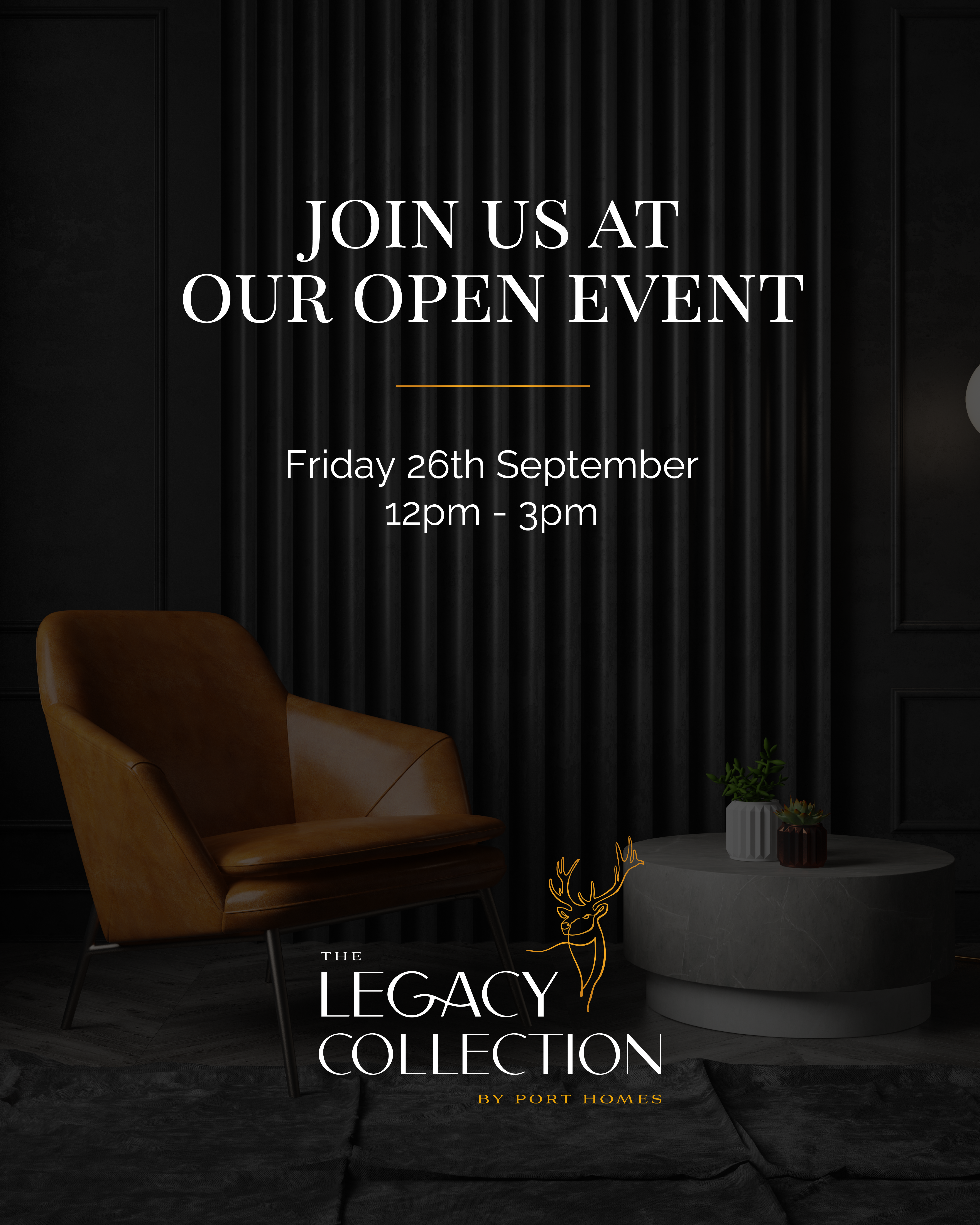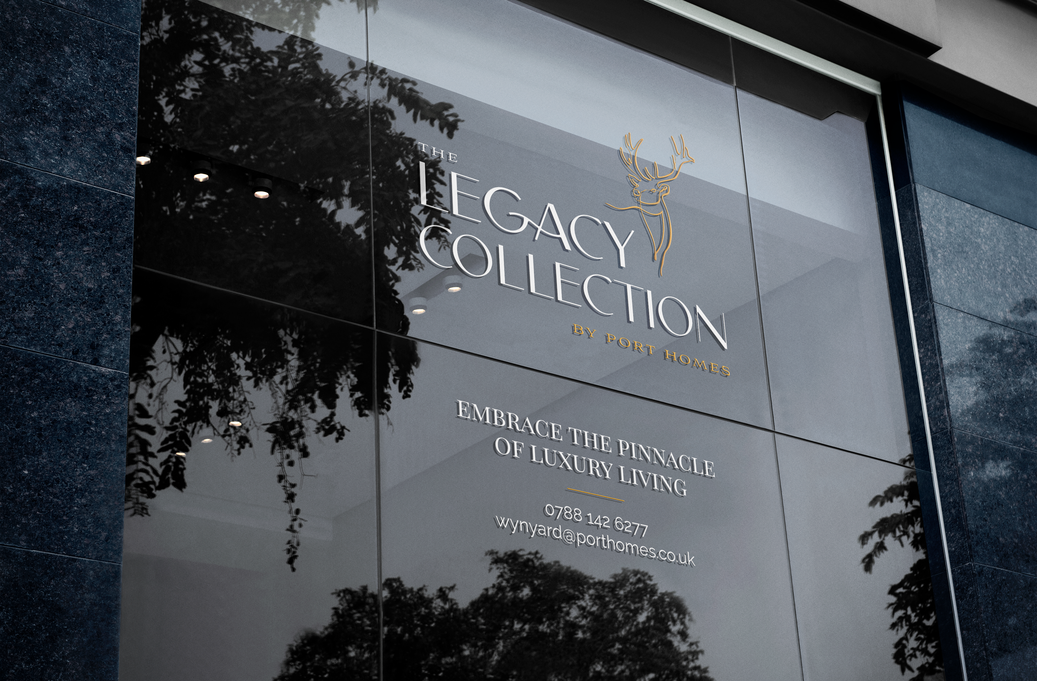 The stag emblem and darker aesthetic introduced a more composed and premium tone, while remaining aligned with the Port Homes brand. Naming, messaging and collateral were crafted to reflect the exclusivity of just four homes.